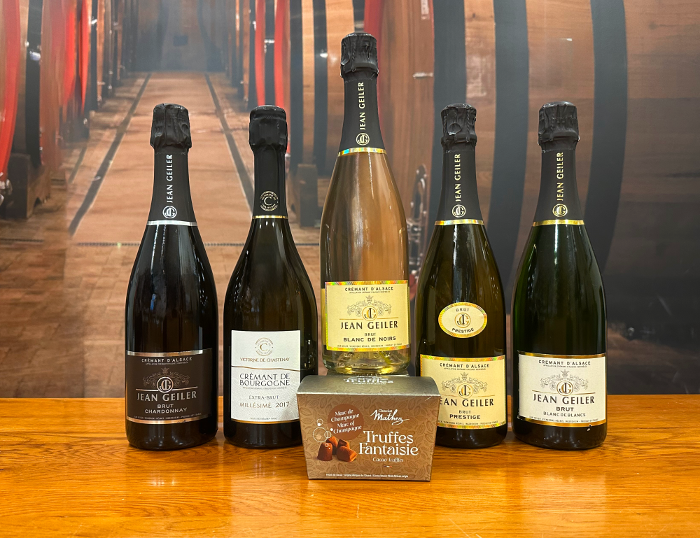 Valik meie parimatest Cremantidest ja kingituseks kvaliteetsed Prantsuse Marc de Champagne trühvlid! Cremant de Bourgogne Brut de Chastenay Millesime. Jean Geiler Cremant d`Alsace Brut Prestige; Jean Geiler Cremant d`Alsace Blanc de Blancs Brut; Jean Geiler Cremant d`Alsace Chardonnay Brut; Jean Geiler Cremant d`Alsace Blanc de Noirs Brut; Trühvlid Chocolat Mathez Marc de Champagne 100g
